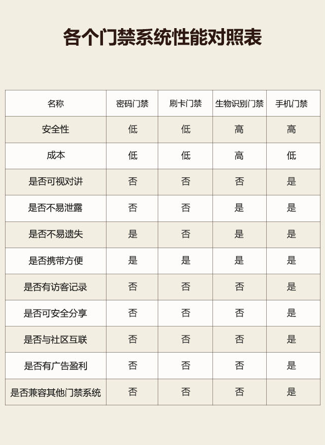如表所示,相较于传统门禁,手机门禁具备以下显著优势: