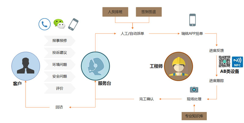 可现场反馈异常和报修,支持二维码、NFC芯片、拍照;